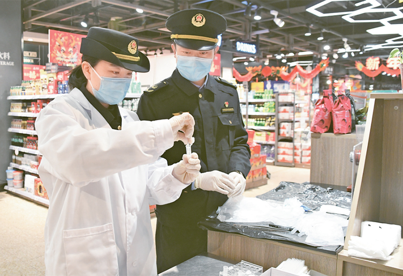 中國式現代化,民生為大。市場監管領域必須強化以人民為中心的發展思想,守牢安全底線,切實保障人民群眾生命財產安全。圖為2024年2月20日,北京市海淀區市場監督管理局工作人員對一家超市的在售元宵進行快檢。 新華社記者 任超/攝